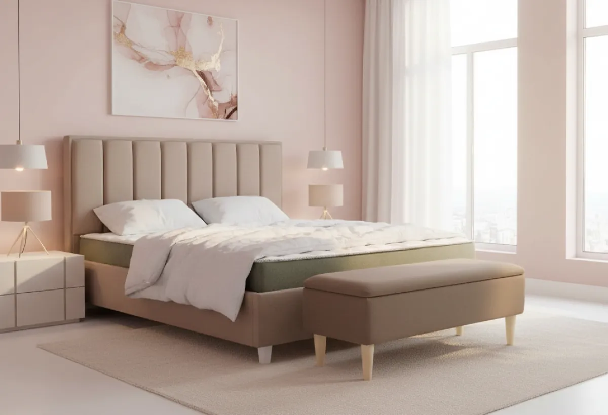 - В спальне банкетка Sarma станет уютным местом для утреннего кофе или вечернего чтения, а также практичным хранилищем для постельных принадлежностей.